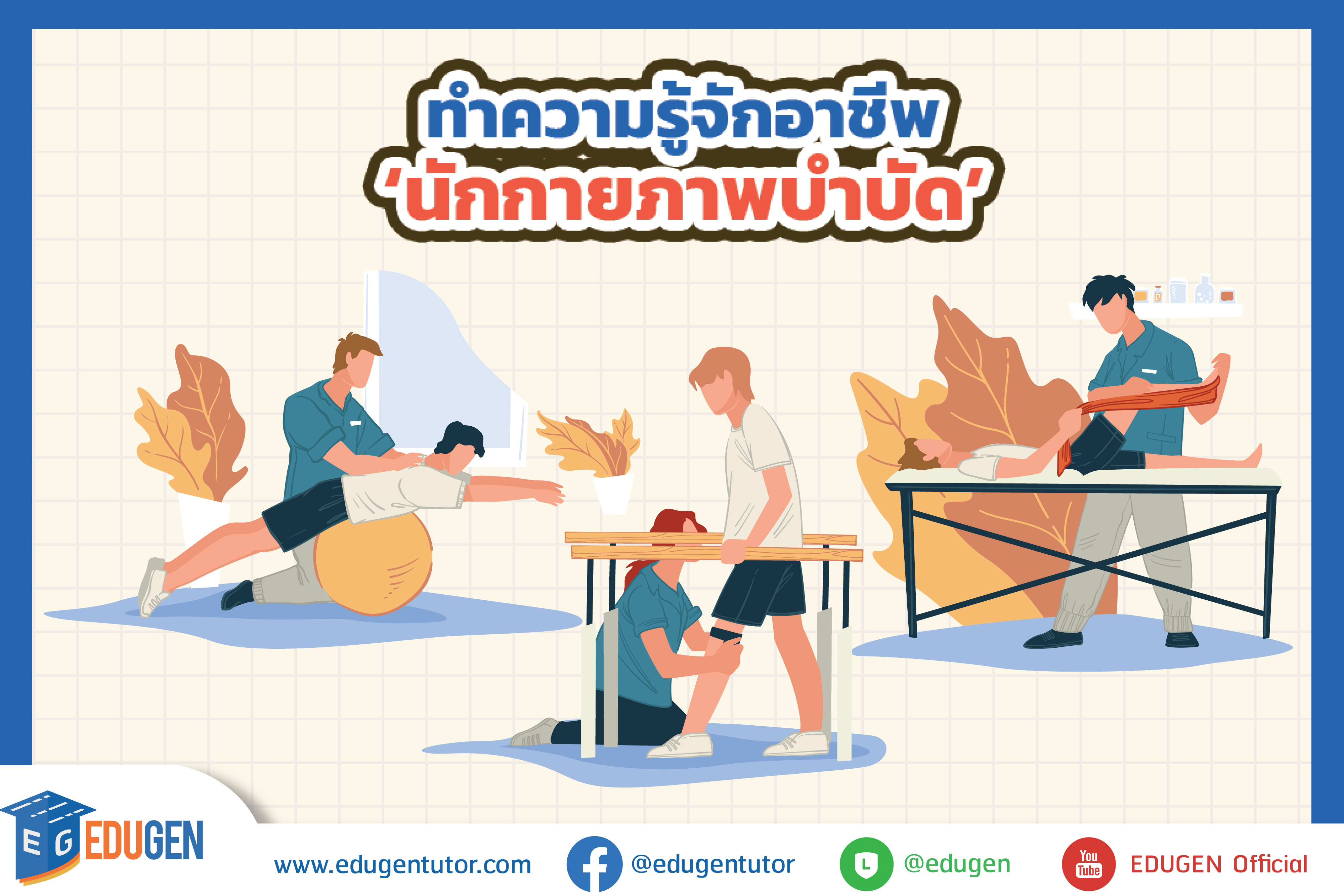 มีน้อง ๆ ทักมาหลังไมค์เยอะม๊ากกก ว่าอยากให้พี่ EDUGEN รีวิว "อาชีพนักกายภาพบำบัด" พี่เองก็ไม่รอช้าที่จะไปรวบรวมข้อมูลต่าง ๆ เกี่ยวกับอาชีพนี้มาฝากไว้ในอ้อมอกอ้อมใจของน้อง ๆ ทุกคนแล้วจ้า ใครที่อยากเป็นนักกายภาพบำบัดบอกเลยว่าถูกใจกับรีวิวในวันนี้แน่นอน...!